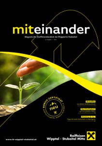 in einer Welt, die sich stetig wandelt, ist Nachhaltigkeit mehr als nur ein Schlagwort – sie ist eine Verpflichtung gegenüber kommenden Generationen. Auch wir bei der Raiffeisenbank verstehen Nachhaltigkeit als zentrale Grundlage unseres Handelns. Sie prägt unsere Entscheidungen, unsere Beratung und unser gesellschaftliches Engagement. Nachhaltigkeit bedeutet für uns, ökonomische, ökologische und soziale Verantwortung gleichermaßen wahrzunehmen. Als Genossenschaftsbank sind wir von unserem Selbstverständnis her auf langfristiges Denken ausgerichtet. Unsere Geschäftspolitik basiert auf Solidität, regionaler Verankerung und der Förderung unserer Mitglieder und Kunden. Wir investieren bewusst in die Menschen und Unternehmen unserer Region, stärken lokale Initiativen und unterstützen Projekte, die soziale Gerechtigkeit und Umweltschutz fördern. Innerhalb unserer Bank arbeiten wir konsequent daran, unsere internen Prozesse nachhaltiger zu gestalten: vom ressourcenschonenden Einsatz von Materialien über die Förderung klimafreundlicher Mobilität bis hin zu nachhaltigen Bauprojekten und energieeffizienten Filialen. Auch bei der Geldanlage beraten wir Sie verantwortungsbewusst: Immer mehr unserer Anlagestrategien berücksichtigen ökologische, soziale und ethische Kriterien. „Was einer allein nicht schafft, das schaffen viele“ – diese Überzeugung, die Friedrich Wilhelm Raiffeisen schon im 19. Jahrhundert geprägt hat, leitet uns bis heute. Gemeinsam mit Ihnen möchten wir den Wandel zu einer nachhaltigeren Zukunft gestalten. Es sind die vielen kleinen Schritte – bewusstes Handeln im Alltag, nachhaltige Investitionen, die Unterstützung regionaler Projekte –, die in Summe Großes bewirken. Wir laden Sie herzlich ein, diesen Weg mit uns gemeinsam zu gehen. Lasst uns Nachhaltigkeit nicht nur als Ziel, sondern als gelebte Haltung verstehen – in unserer Bank, in unserer Region, in unserem täglichen Leben. Ihre Raiffeisenbank Wipptal - Stubaital Mitte Dir. Andreas Mantl Dir. Wolfgang Gredler Liebe Leserinnen, liebe Leser, mit.einander 3 editorial